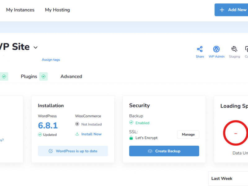 Once inside the site management panel, you’ll see all the general information related to your WordPress instance.